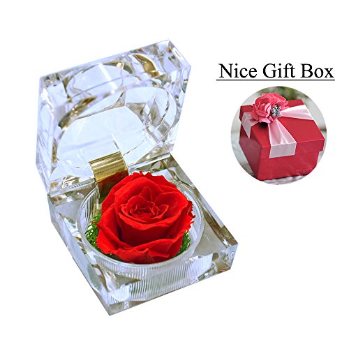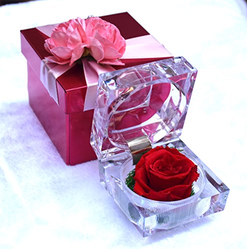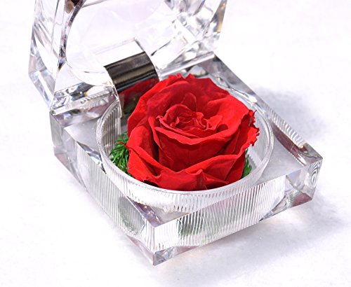 ハンドメイドPreservedフレッシュフラワーローズアクリルクリスタルリングボックス – 小さな贈り物ロマンチックバレンタインの日のアイデア、記念日、誕生日