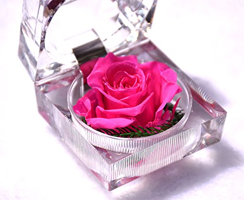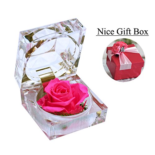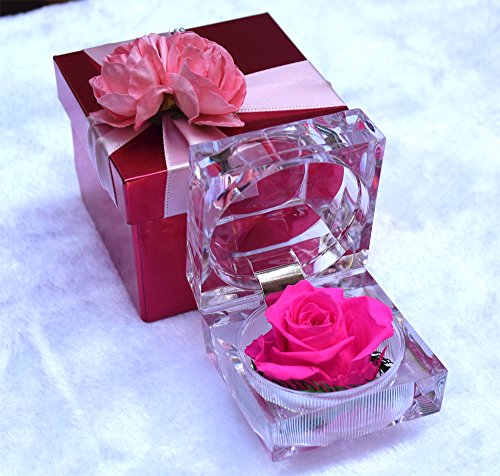 ハンドメイドPreservedフレッシュフラワーローズアクリルクリスタルリングボックス – 小さな贈り物ロマンチックバレンタインの日のアイデア、記念日、誕生日