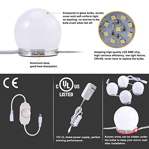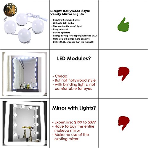 b-rightハリウッドスタイルLEDバニティミラーライト 4 Bulbs Lights Kit BR-JQ006J3SI-01