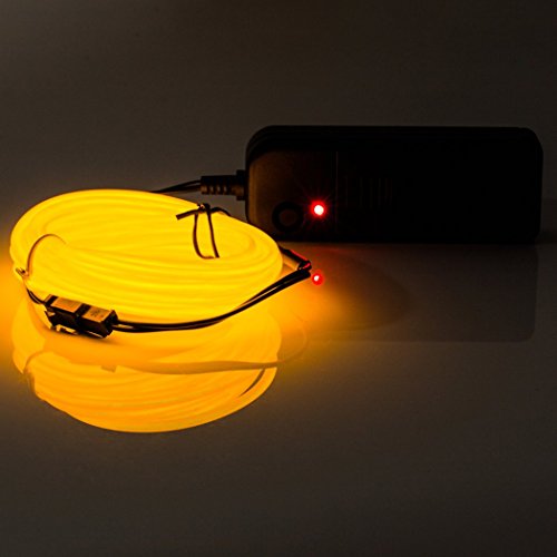 B-right 5M 16.4ft Neon Glowing Strobing El Wire Lights Kit with Battery Pack Controller for Parties Halloween Advertisement Decoration (Yellow) [並行輸入品]