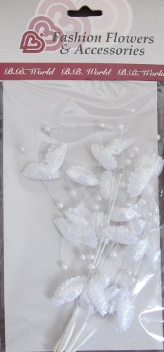 B。B。ファッション虹色のクラフトパック花3 SpraysスプレーWリーフ&フェイクパールワイヤ茎でカラーホワイト