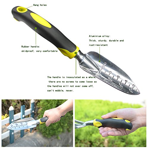 - Material durability and Rust-resistant: The Garden tools are made out of very thick aluminum, They are rust-resistant and strong enough to dig and handle any soil, Not deformation, sturdy and durable.