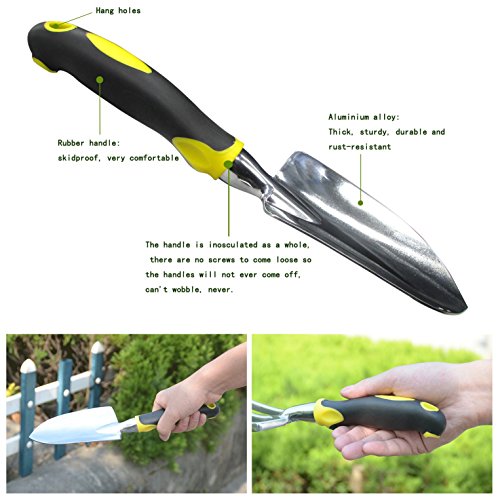 - Material durability and Rust-resistant: The Garden tools are made out of very thick aluminum, They are rust-resistant and strong enough to dig and handle any soil, Not deformation, sturdy and durable.