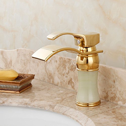 babykkフル銅Jade Basinホットとコールドゴールド蛇口滝型浴室シンク洗面