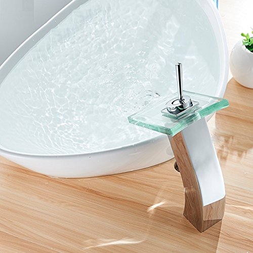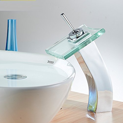 babykkフル銅バスルーム、ホットとコールドガラス滝蛇口バスルームシンク洗面