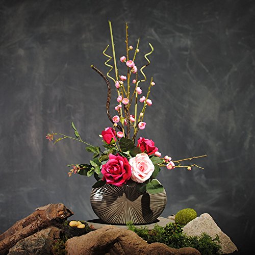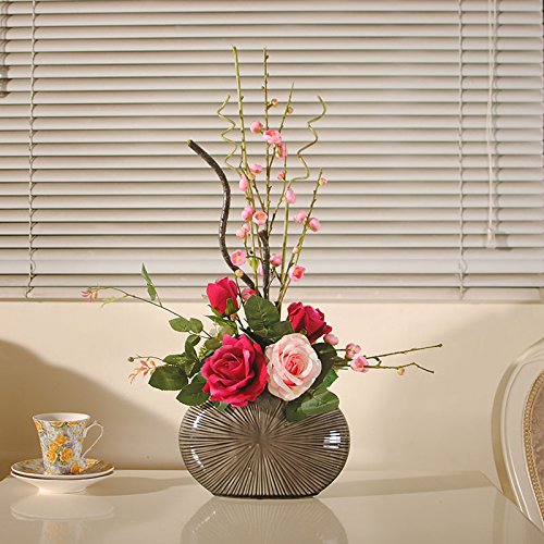 BAGEHUA 春咲き花のシミュレーションセラミック花瓶の花の装飾が施されたベッドルームスーツ絹の花の装飾のプラムの花