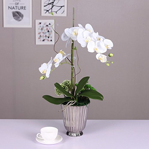 BAGEHUA 精巧な花を感じるファレノプシス花シミュレーション室テーブルの装飾装飾的な花鍋花銀花瓶、白