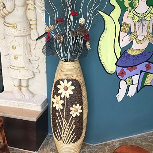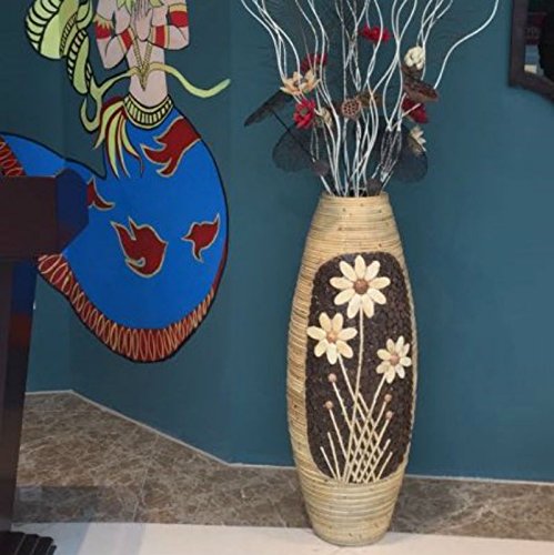 色 BAGEHUA インドネシア籐の花瓶花瓶籐籐工芸花瓶花瓶花瓶花瓶工芸室階 100 cm 背の高い花瓶 ドライフラワー