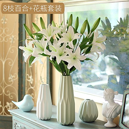 BAGEHUA 美しいユリの花シミュレーション折り紙セラミック壺装飾偽の絹の花のセットしたリビングルーム、