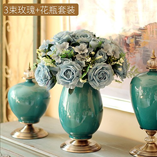 BAGEHUA バラの花シミュレーションパッケージセラミック壺花の装飾の部屋、 C