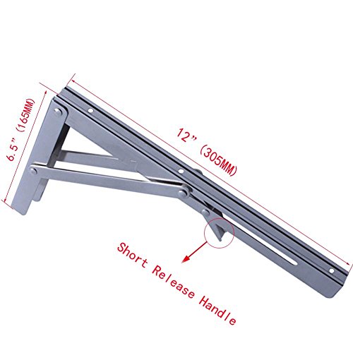 折りたたみシェルフブラケット(ブレース)テーブル折りたたみシェルフまたはブラケット、MarineグレードステンレススチールMax。ロード330 lbs (ショートリリースハンドル、12 "長