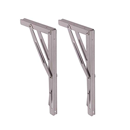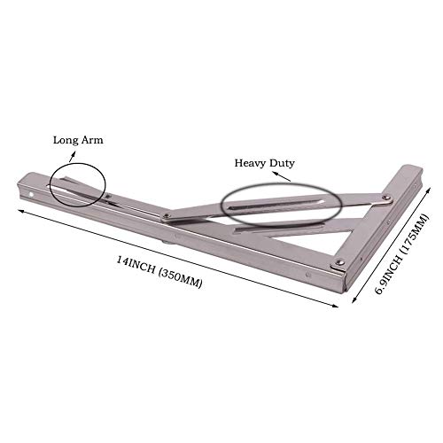 14インチ 折りたたみシェルフブラケット (ブレース) 高耐久 テーブル 折りたたみ棚 ブラケット、マリングレード 高耐久 ステンレススチール 最大 負荷 580 ポンド (ロングリリースハンドル)、(ペアで販売)。