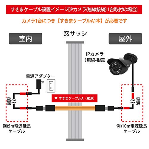 - 全長:26.5cm ケーブル部17.5cm、窓が閉じたままでも: 約0.2mm、という薄いケーブルのおかげで窓やドアを閉じていても隙間から室内に引き込みが可能です。