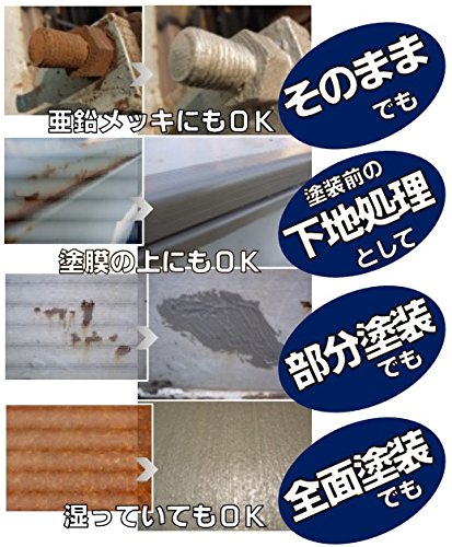 - サビている所もサビていない所も関係なく塗れ、しかも水性です。さらにはサビていない所にはサビ予防として、全体を塗る場合は錆止めプライマーとして一液で何役もこなします。