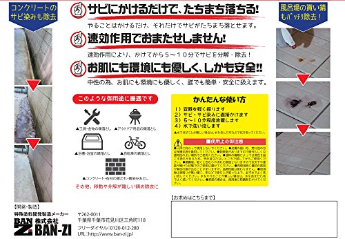 - 錆び染みに対して吹きつけて、水で洗い流すだけで除去できます.