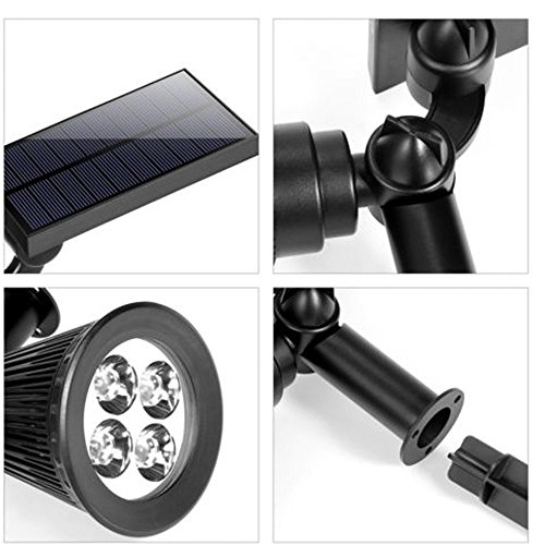 - ライトにはパワーLEDが4個搭載されており、より明るく空間を演出してくれます。太陽光で充電し、電気配線なし、面倒なメンテナンス不要、設置もとても簡単な照明器具。