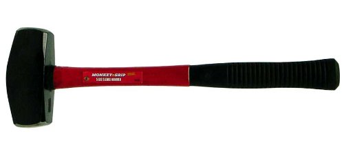 Durable 5 pound sledge hammer features a fiberglass handle with a firm rubber grip.