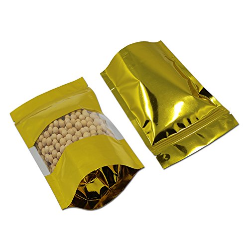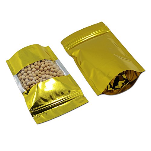 AirtightジッパースタンドUp MylarバッグVisualウィンドウ再利用可能なアルミニウム箔ZipロックセーフGradeバルク食品ストレージポーチバッグwith Notchコーヒーナットの熱紐付きのパッキング 14x20cm (5.5"x7.9")