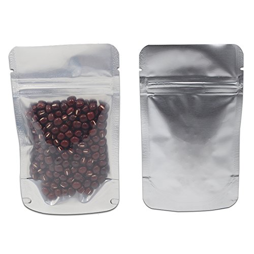 クリアフロントスタンドUp Alone 4.7 Milマイラー箔バッグResealableの熱紐付きのSmell ProofポーチPureアルミ箔Beef Jerky Reclosableパックfor食品グレードストレージ 3.3x5.1 inch-1.7oz Coffee Powder クリア