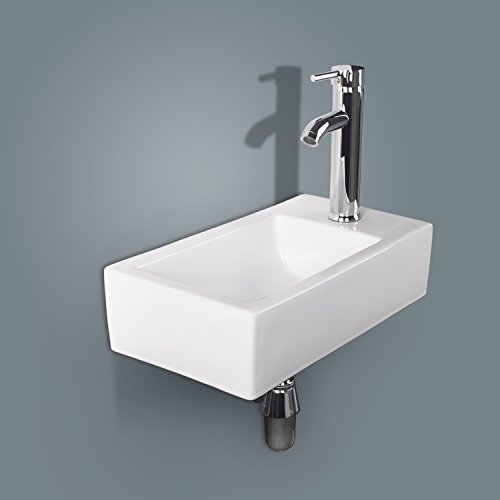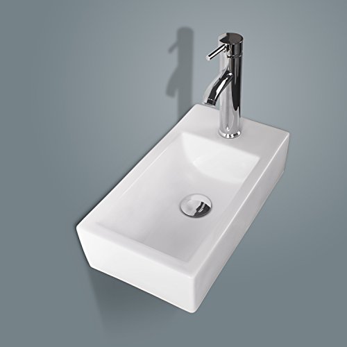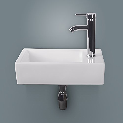 bathjoyバスルーム長方形壁マウントホワイト磁器セラミック容器シンククロム蛇口コンボ