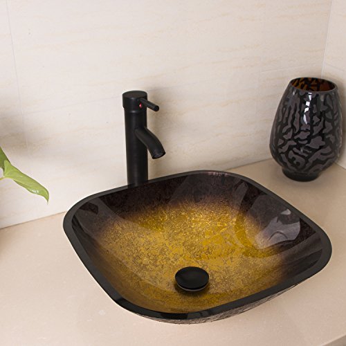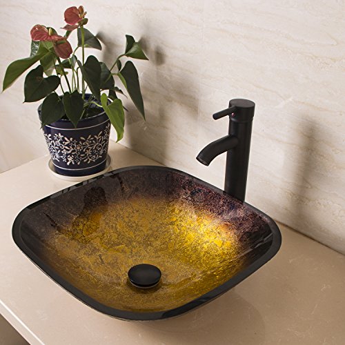 bathjoyバスルームスクエアラセット強化ガラス容器シンクwith Orb蛇口and Pop upドレイン