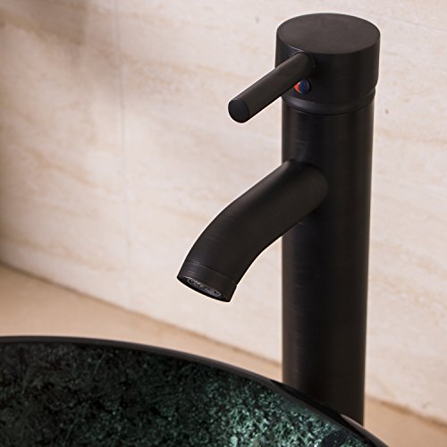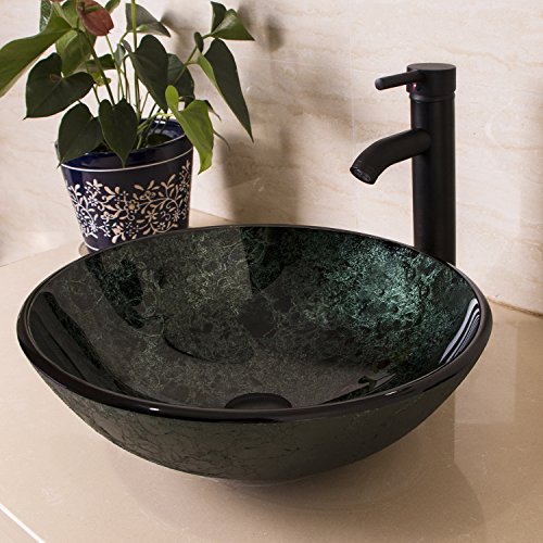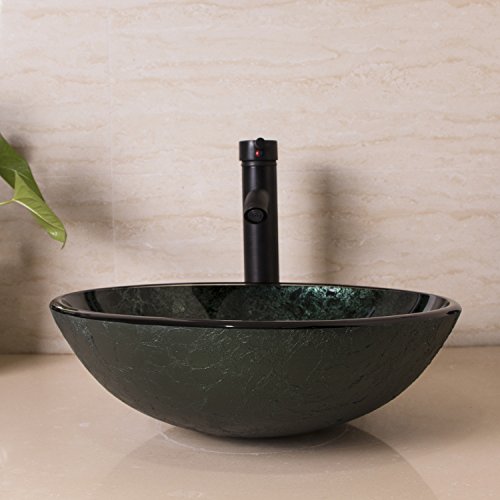 bathjoyダークグリーンArtistic強化ガラス容器シンク浴室ボウルwith Oil Rubbed Bronze蛇口とポップアップドレイン