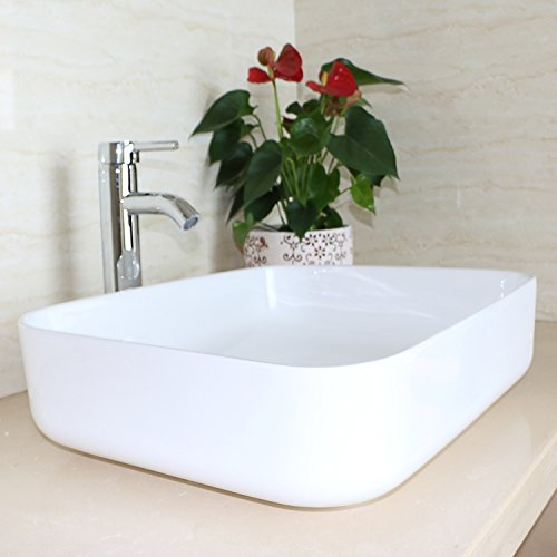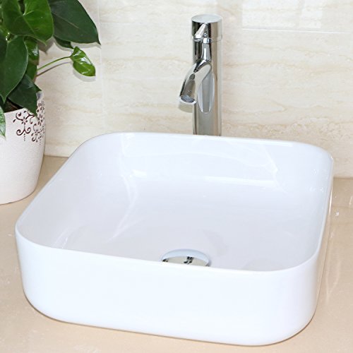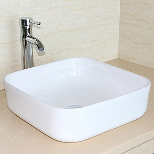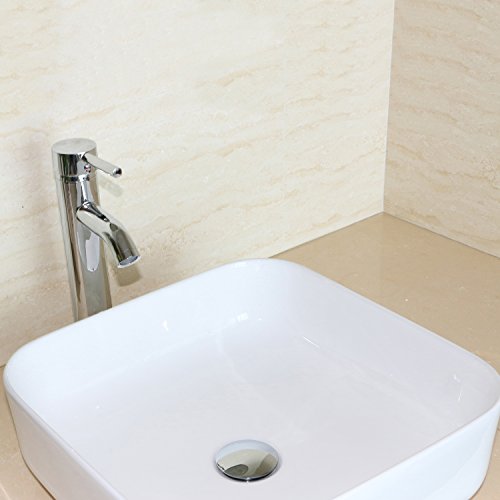 bathjoy浴室洗面スクエアホワイト磁器セラミック容器シンクアートBasin andクローム蛇口コンボ