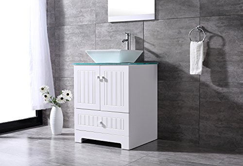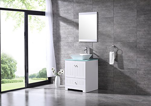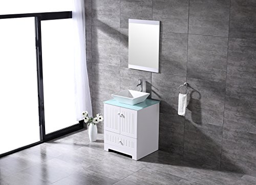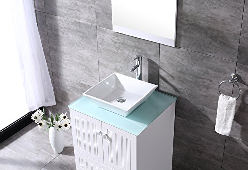 bathjoy 24 "ホワイト浴室洗面化粧台キャビネットTop Squareセラミック容器シンク蛇口Drainコンボwithミラー洗面セット