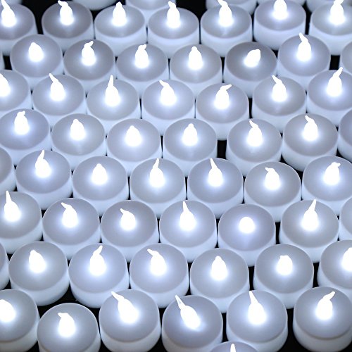 bathwa Flameless LEDティーライトキャンドルの季節& Festival Celebration、ちらつきバッテリーPoweredリアルなと明るい電球Tealights inホワイト、100のパック