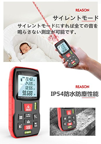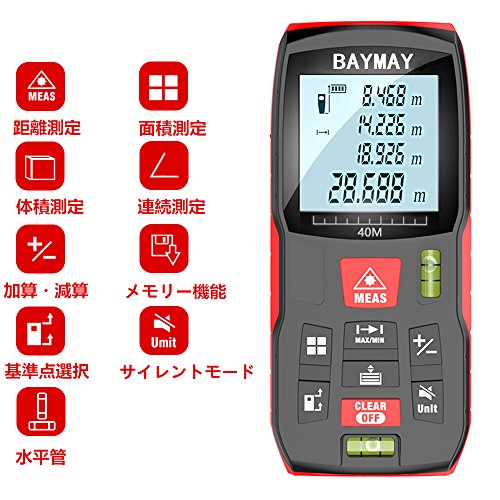 BAYMAY レーザー距離計 最大測定距離40m IP54防水防塵 日本語説明書 サイレントモード搭載 距離 面積 面積 辺測定 連続測定 自動計算 1年保証付