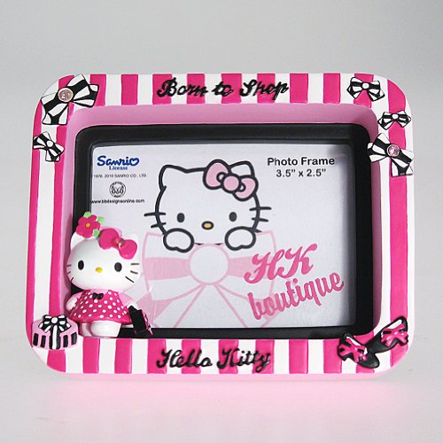 - このハローキティの小さな写真フレーム機能にショップが愛らしいとoh-so-lovable Hello Kittyサンリオの前に立ってフレームから生まれ、Born To Shop ' 2の横にあるショッピングバッグを持って、デコレーションします。
