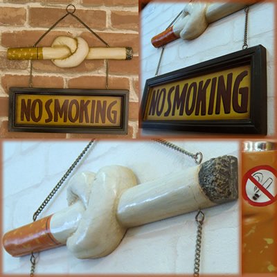 ノースモーキング サインプラッケ 【NO SMOKING SIGN】 禁煙の多いお店も増えてきた今日この頃。 そんなお店にピッタリなプラッケ・サインプレートです。 喫煙・禁煙の区画整理に飾っても立体的になっていてカッコイイです! サイズ:約W.41.5cm x D.4cm x H.41cm 素材:MDF