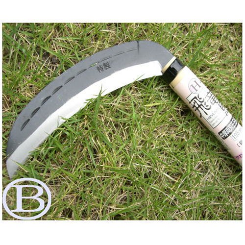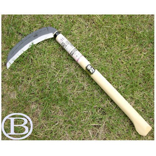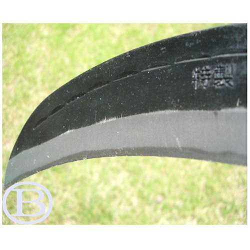 両刃タイプの中厚三日月鎌。左右どちらからでも使える両刃タイプの鎌です。固い草からやわらかい草まで刈れる鎌です。