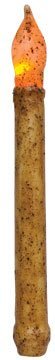 A warm, flickering candlelight look is easy and safe with our Burnt Ivory Timer Taper! 9 LED taper with an golden antiqued wax coating and a grungy, primitive texture, features a built in timer, setting the candle to stay on for 6 hours and then go off for 18 hours. Requires 2 AA batteries (not included).;Due to the handmade and/or special order nature of our products, express delivery may not be available. Please allow up to 10-12 days for delivery.;TIMER TAPER BURNT IVORY 9