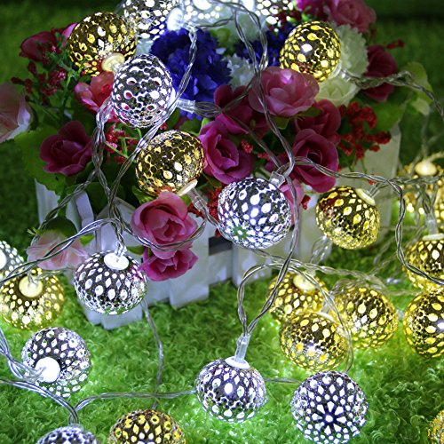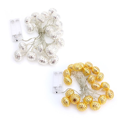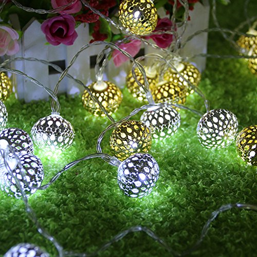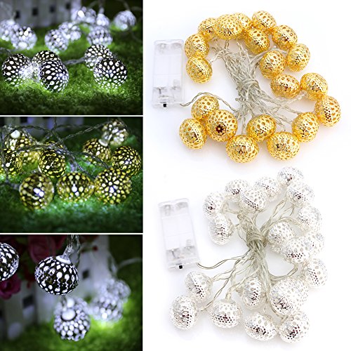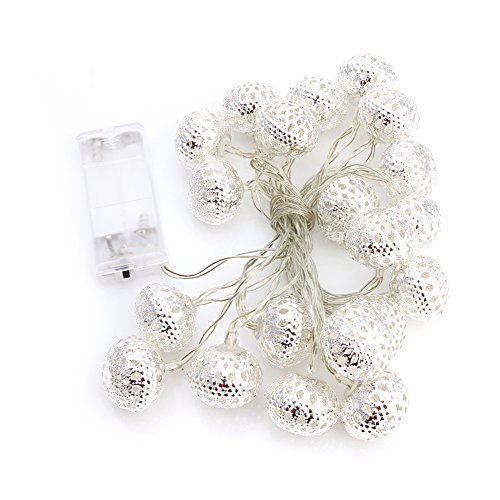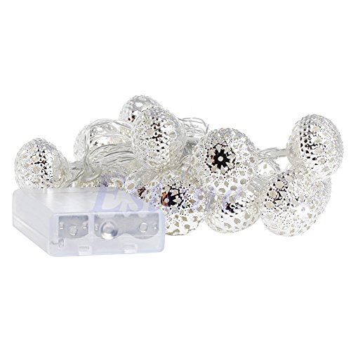 Bchz 20ledメタルボール文字列フェアリーライトモロッコShining 2モード点灯、フラッシュ)クリスマスウェディングの装飾文字列ランプ新しい M シルバー