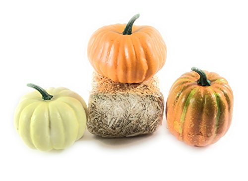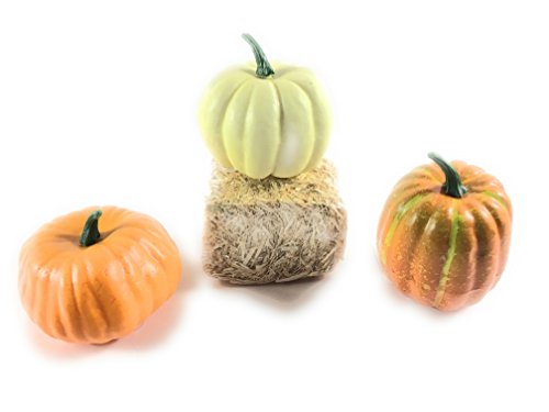 Pumpkins and Straw Bale for Fall秋またはハロウィンホームdecor-bundleの4アイテム