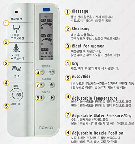 Novita BD-RA773 リモコン ウォシュレット,乾燥機能,暖房便座,銀ナノ,座浴,暖房便座,漏電遮断,水道直結式,連続加熱水機能,220V(海外直送品)