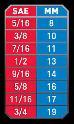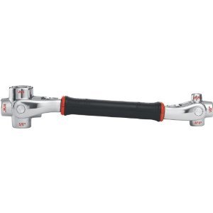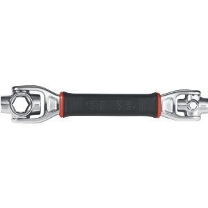 This all-in-one wrench puts 16 of the most popular standard and metric socket sizes at your fingertips--just spin either of the tool's two rotating heads to find the right size.