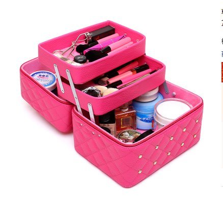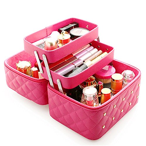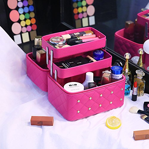 - ③外出や旅行の際そして、簡単に自分の化粧品を運ぶことができます! 3段タイプ、大容量、防水素材(PU)、携帯便利"
