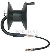 This hose reel holds up to 50' of 3/8 inch high pressure hose. Comes with 3/8 inch FNPT steel plug, 3/8 inch FNPT Bushing, 45 deg elbow, and 30 inch 4000 psi hose.
