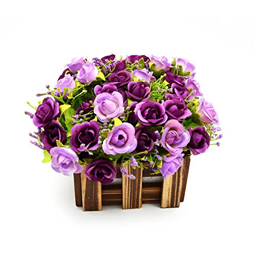 BEADY ミニダイヤーバラ 人工観葉植物 造花 光触媒 フェイクグリーン インテリア ギフト お祝い (花柵(木), パープル)