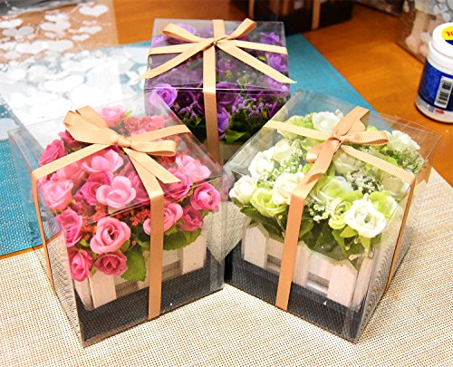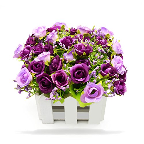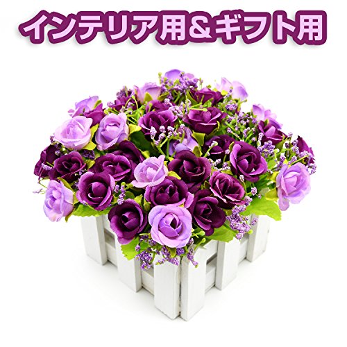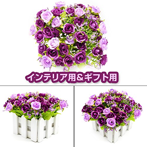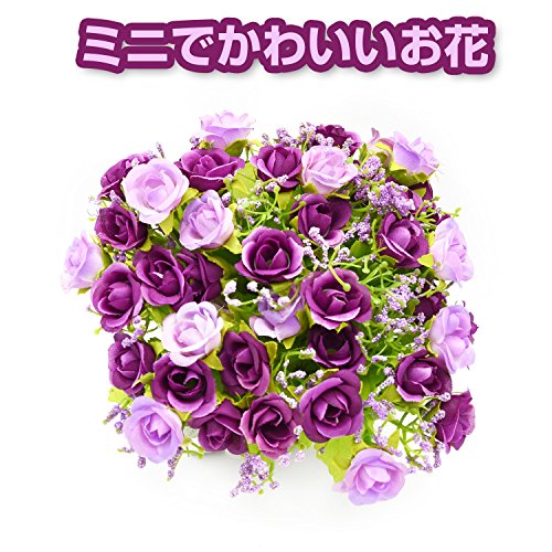 BEADY ミニダイヤーバラ 人工観葉植物 造花 光触媒 CT触媒加工 フェイクグリーン インテリア ギフト お祝い (花柵(ホワイト), パープル)