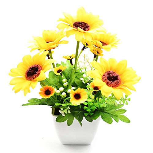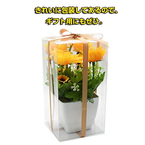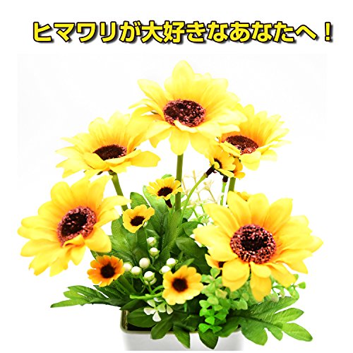 - セット内容:造花のひまわり+模造陶器入れ物 全体のサイズ 約長さ23cm×高さ15cm、大きなヒマワリ(5個)の直径 約7cm 小さなヒマワリ(10個)の直径 約2.5cm、模造陶器入れ物のサイズ:長さ9.5cm××幅9.5cm×高8cm