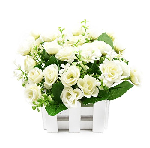 BEADY ミニダイヤーバラ 手作り 自社DIY 人工観葉植物 造花 光触媒加工 フェイクグリーン インテリア ギフト お祝い 白柵 (ホワイト)