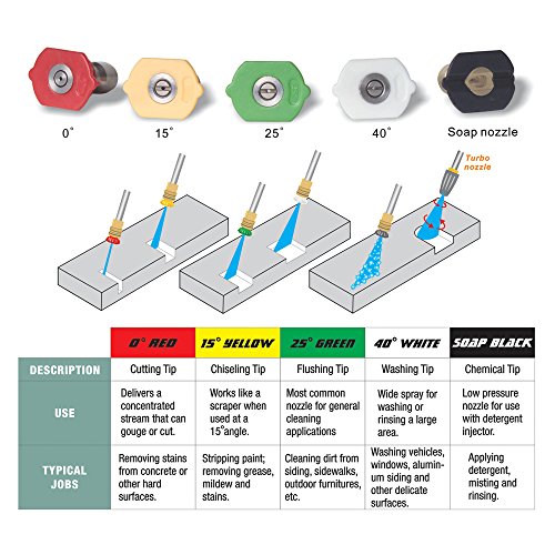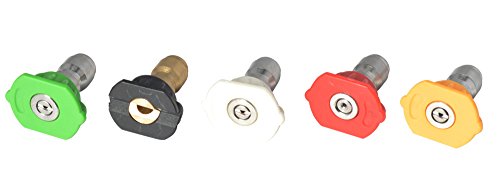 - 本製品には、下記の部品が含まれています:高圧水ガン 1個, ランス 1本, クリックプラグ式ノズル 1セット(5個、0°、15°、25°、40°、洗剤),ゴム製ノズルシート 1個