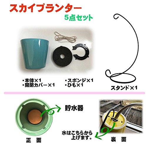スカイプランター フラワー スタンド 陶器 空 逆さ 吊り下げ (グリーン)