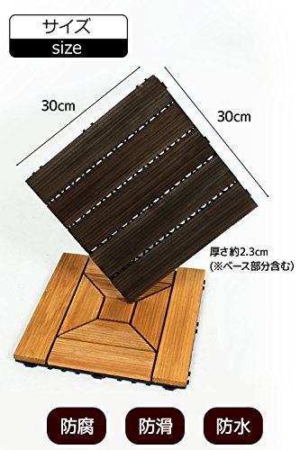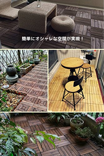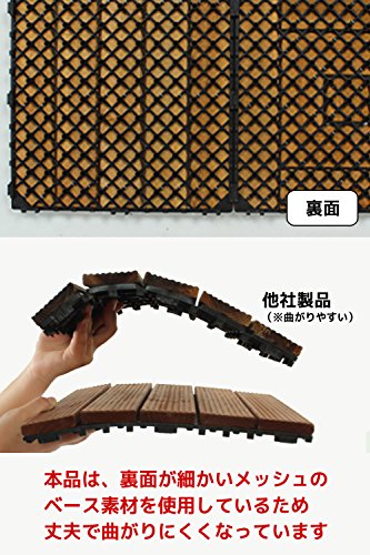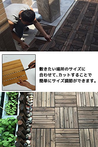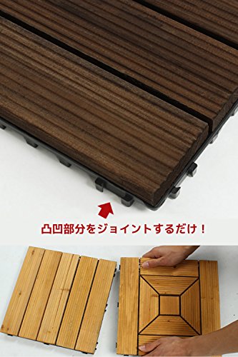 - 凸凹部分をジョイントしてつなげて敷くだけの簡単施工で、好みの広さで使える木製デッキパネルです。