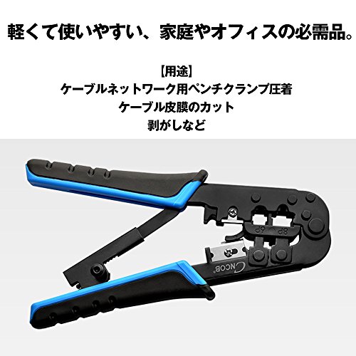 - 用途:ケーブルネットワーク用ペンチクランプ圧着、ケーブル皮膜のカット、剥がしなど