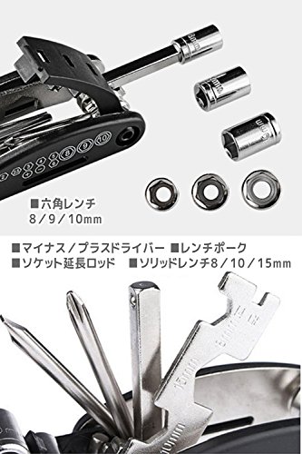 - 【詳細機能】自転車以外にも、バイクや日常生活でも使えるプラス・マイナスドライバー。その他にもスパナやソケットも完備。