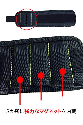 ネジや釘などを強力な磁石で保持しながら作業ができる、便利なマグネット内蔵のリストバンド。なくしがちだった小さな部品を目に見える箇所にくっつけていられるので、作業がはかどります。建築現場や、自動車修理、組立、分解などDIY作業に大活躍。一度使ったら手放せないほど便利なアイテムです。